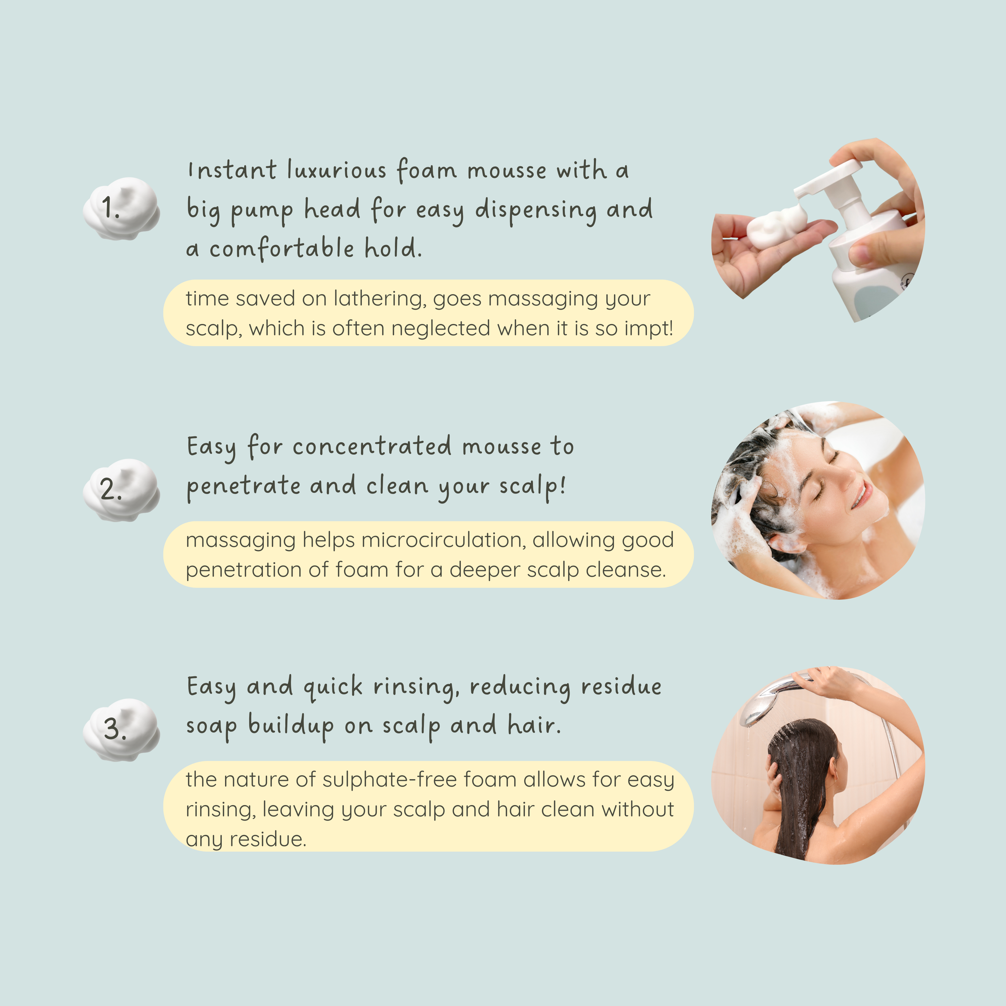 ✨ Pro Tip: If your hair is dirty the first time you use our shampoo, you may notice less foam as it works hard to cleanse your hair instead of producing lather. Once your hair is clean, you’ll see more foam. For those who wash their hair less frequently or use a lot of leave-in products (like sprays or mousse), consider a double cleanse or occasional use of a sulphate shampoo for optimal scalp and hair care. 🌿